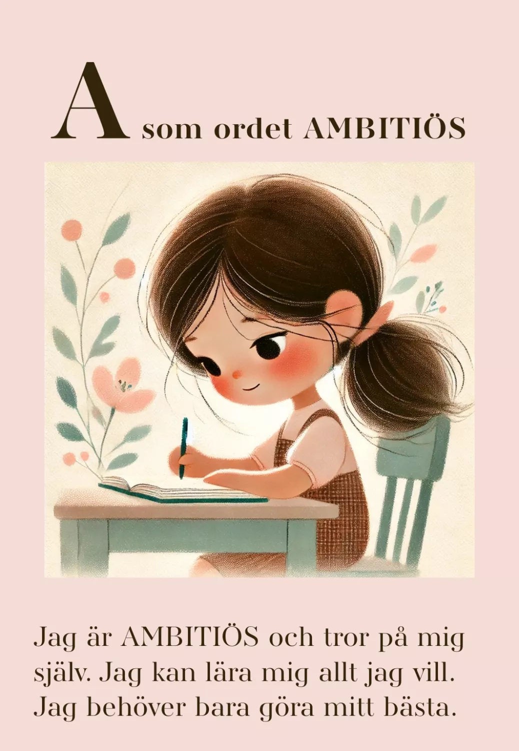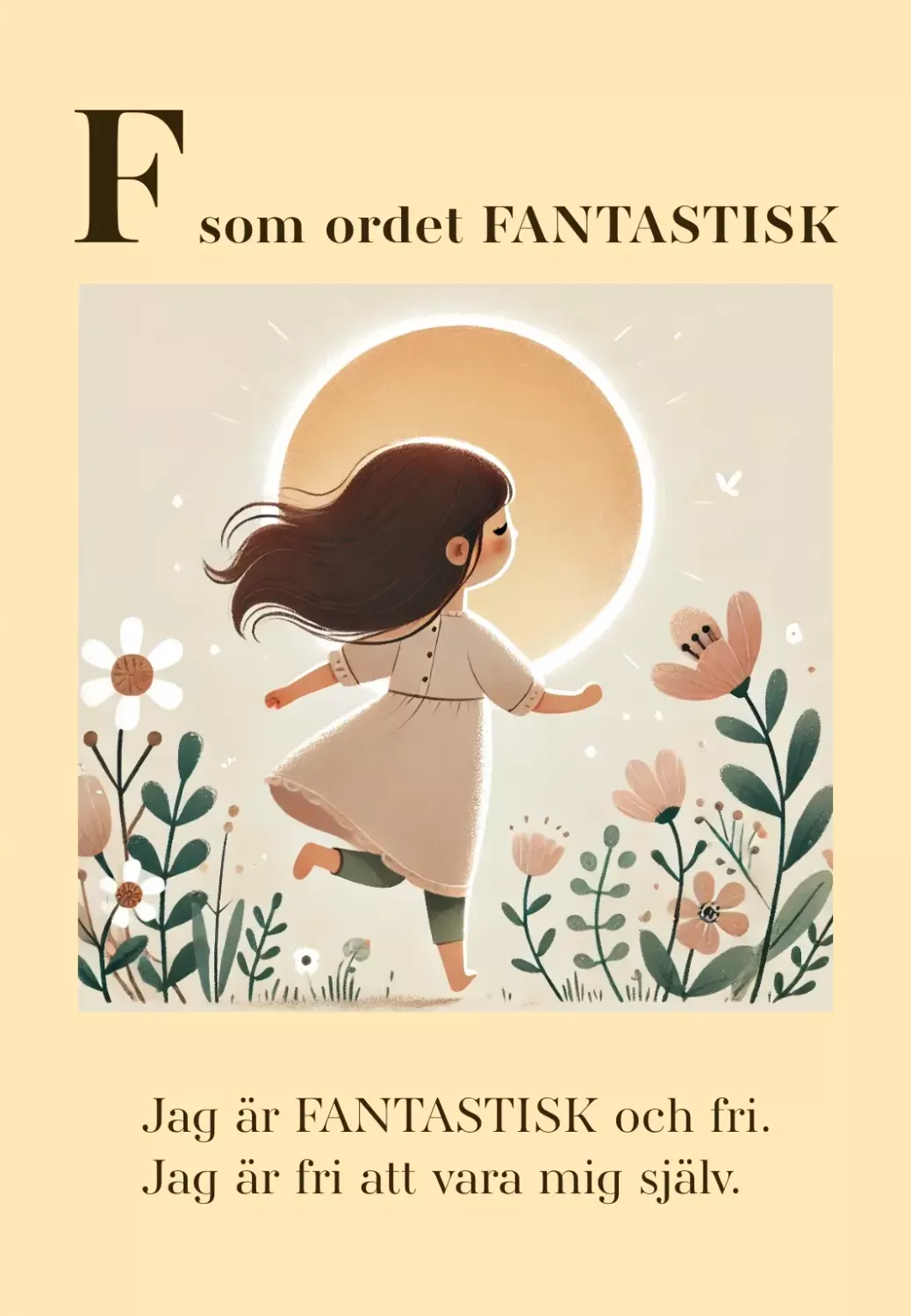 illustrerade bildkort A–Ö med stärkande ord och affirmationer. Ett pedagogiskt material som kombinerar språkutveckling, självkänsla och samtal.