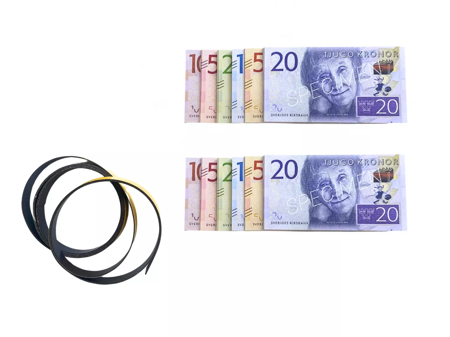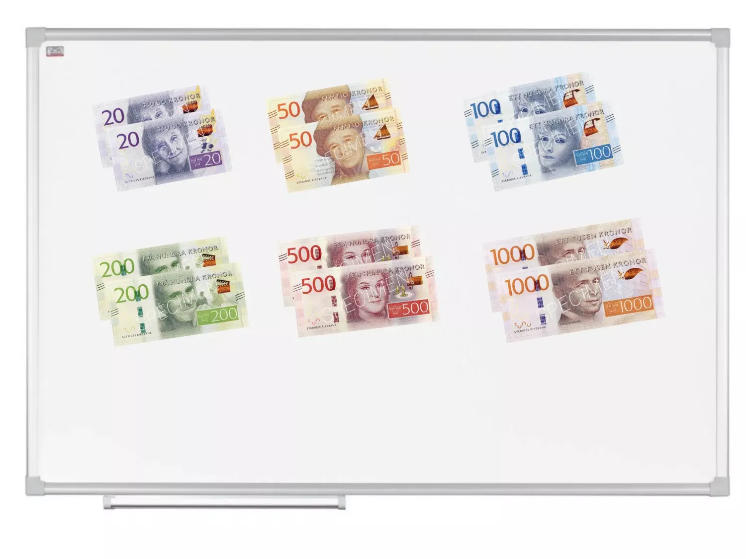 Demo-sedlar i kartong för tydlig undervisning på whiteboard. Magnetremsa ingår.