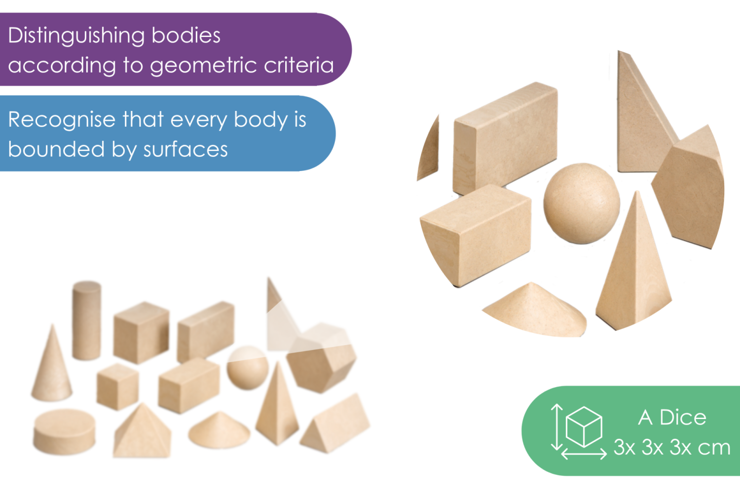 Satsen innehåller 14 olika former för genomgång av tredimensionella figurer.