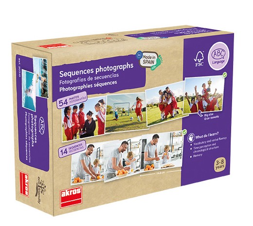 54 fotografier som kan användas för att bilda 14 SEKVENSER med 3, 4 och 5 scener som visar