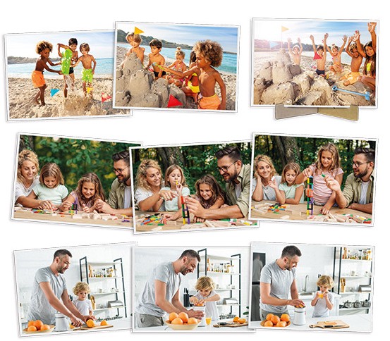 normala familjeaktiviteter som utförs av barn. Fotografiernas mått: 16,6 x 11,6 cm. Inkluderar