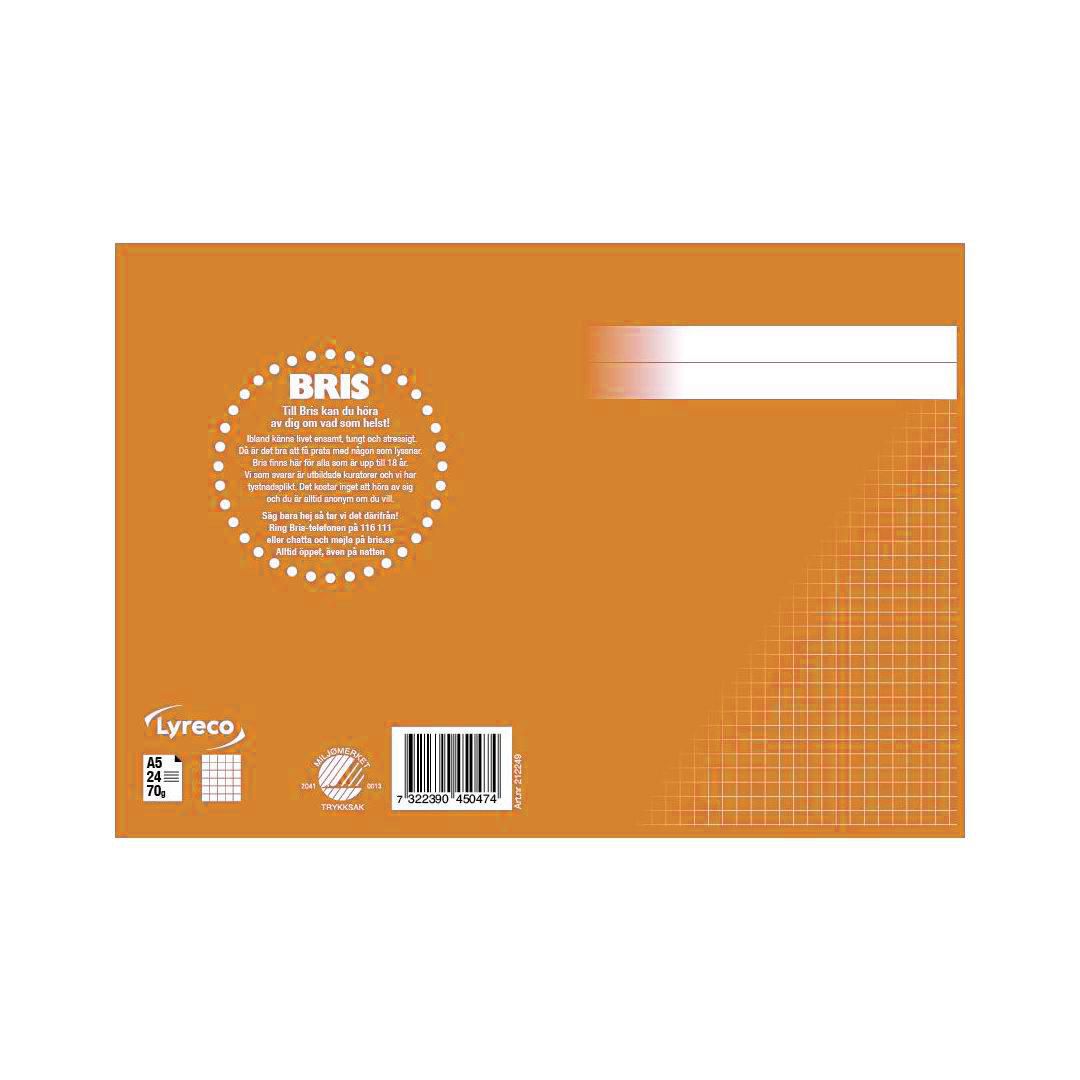 Ett svanenmärkt, linjerat, skrivhäfte med 5+5+5+7mm linjeavstånd. Format 17 x 21 cm. Tillsammans stödjer vi BRIS genom att 5 öre per sålt häfte ur denna serie går direkt till BRIS, Barnens Rätt i Samhället.
